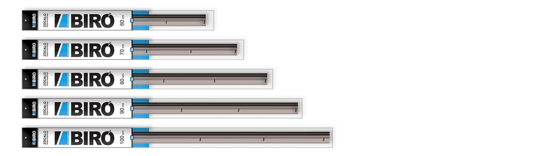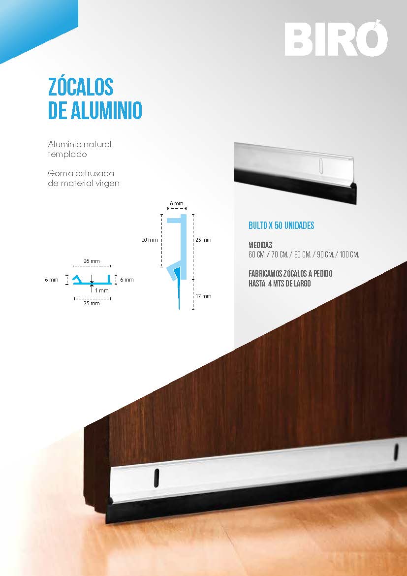 Materiales: Aluminio Natural Templado - Goma extrusada de material virgen. Medidas: 60 cm. - 70 cm. - 80 cm. - 90 cm. - 100 cm. - 125 cm. Presentación: En Bultos x 50 u.